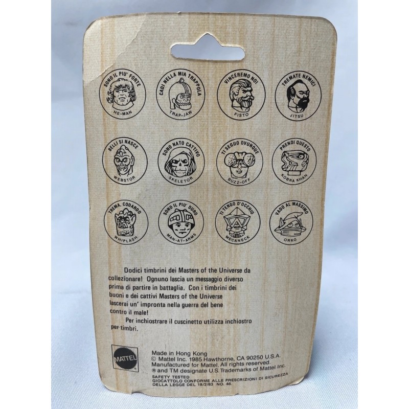 Motu stamp MOC from 1985. Made in Hong Kong, officially licensed by Mattel. Card may show storage wear, no crack in blister. Pictures are part of the description.